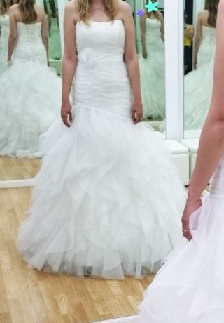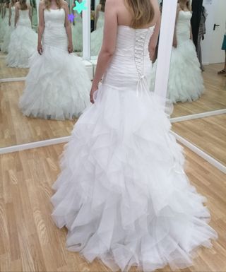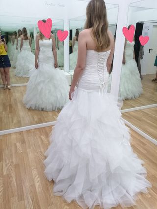 Vestido sin estrenar, sin ningún tipo de arreglo hecho. No se ha sacado de la funda. Talla 38. Corsé ajustable