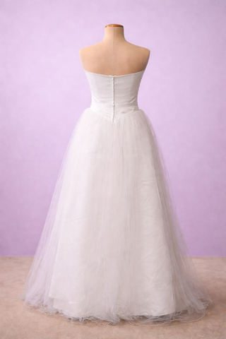Elegante vestido de novia de corte princesa. Un diseño clásico y romántico para tu gran día. - Falda voluminosa con varias capas de tul y organza. - Adornado con delicados bordados. Cuenta con corsé para ajustar mejor su talla, da dos tallas menos o dos más. Impecable.