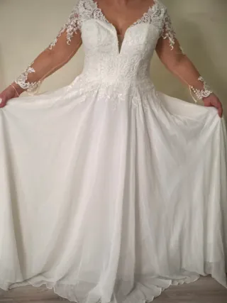 Vestido de novia de talla 40-42, hecho a mano con un diseño elegante. - Talla L / 40 / 12. - Diseño hecho a mano.