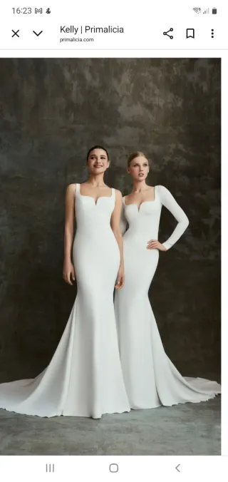Vestido de novia modelo ALBIRA de Atelier bodas Madrid con corte de sirena en crepé bordado con pedrería. La falda sirena desciende de forma impecable y culmina en una cola larga decorada con encaje y pedrería, que aporta espectacularidad y movimiento a cada paso. Arreglado después de la boda por el mismo Atelier Bodas por lo que está nuevo. Las medidas son, Pecho 106 cm, Cintura 90cm y Cadera 116 cm aproximadamente. Yo uso talla L y mido 1,58cm. No tiene ni un año el vestido ya que me casé el 2 de mayo de 2025 y el vestido está guardado en su funda original de la tienda. Si necesitais más fotos o informacion hablarme sin problema.