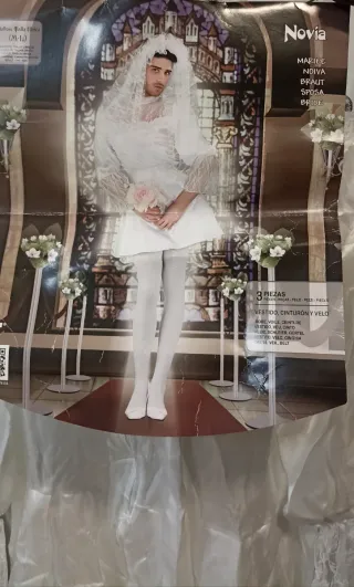 Disfraz de novia para hombre, ideal para despedidas de soltero o fiestas temáticas.Nuevo - Incluye vestido y velo. - Talla M (equivalente a 38-40 de mujer o 48-50 de hombre). - Diseño divertido y original.