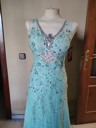 traje para boda o para algún evento súper bonito color verde agua con piedras para la talla 38-40 es de la tienda novias lely precio 80€ me costó 250€