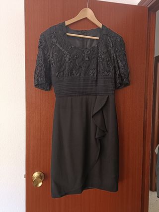 Traje negro de ceremonia para mujer. Ideal para vestir de mantilla. Comprado en tienda de novias. Calculo que equivale a talla 38-40. Ver medidas en fotos. Usado sólo dos veces. Preguntad sin compromiso cualquier duda.