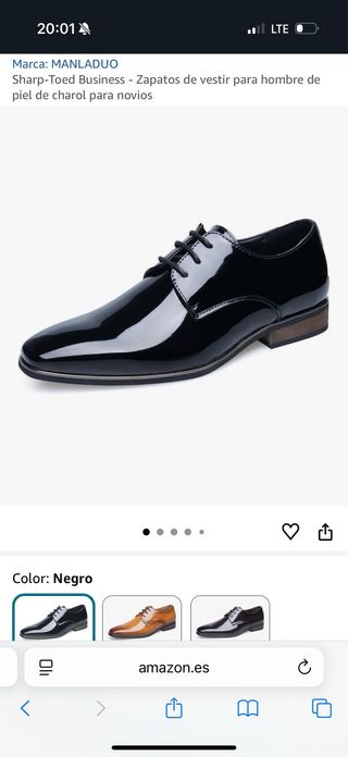 Elegantes zapatos de vestir para hombre, con un acabado brillante de charol. Comprados en Amazon. - Diseño de punta afilada. - Ideales para ocasiones formales o como calzado de novio.