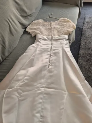 Vestido Pronovias. Color beige. Talla 44. 158 cm de largo y 95 de pecho aproximadamente. Novia. Boda. Le falta algún botón, por lo demás en perfectas condiciones.