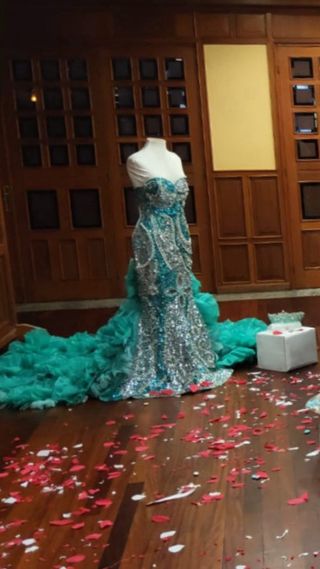 vestidos d novia preciosos el turquesa es lleno de piedreria con su cola llena de flores y tiene mucho para sacar , el dorado es echo a medida aún tiene para sacar también y la cola está llena de piedreria también más INFORMACIÓN HABLAR AL PRIVADO 📨📨📨