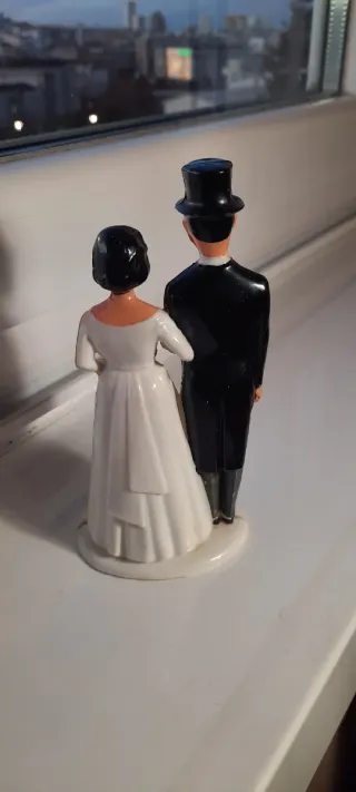 Preciosas figuras de novios para tarta de boda, estilo vintage. - Novio con traje negro y sombrero de copa. - Novia con vestido blanco de novia. ☆ SE PUEDEN RECOGER EN MANO EN CORUÑA FERROL