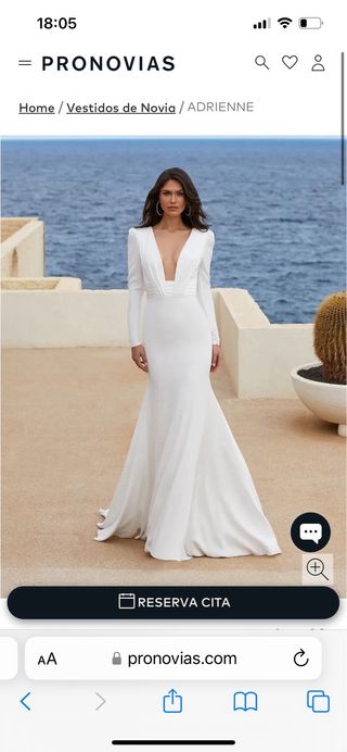 Vestido de novia de pronovias colección 2022 "chimamanda". El estilo es de un color melocotón muy sutil, como en las imágenes de la modelo. Yo quise ponerle mangas pero se pueden descoser sin alterar el vestido. Talla 38-40. Me costó 3.600 euros en tienda. Tengo factura.