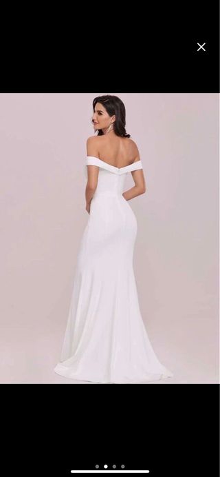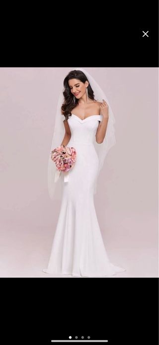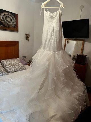 Vendo vestido de novia sin usar de la talla 46, sin arreglos hechos, por lo que esta tal cual la talla. Vestido palabra de honor de corte sirena con volantes de rodilla para abajo. Marca: Alma couture. **El mismo que las dos ultimas fotos, pero blanco entero. Precio negociable