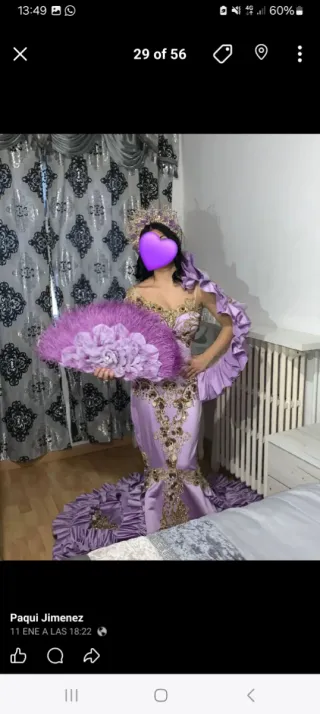 Elegante vestido de novia estilo sirena, con detalles de encaje intrincado. - Diseño con escote pronunciado. - Tejido con aplicaciones de pedrería. - Cola larga y voluminosa. Vendo vestido de novia corte sirena con pedrería y encaje, comprado en 2023 por 1700€ (dispongo de factura). Talla S, con posibilidad de ajuste a una talla más o menos. Espalda abierta con botonadura trasera y preciosa cola con encaje detallado. Diseño muy elegante y favorecedor que marca la silueta sin perder comodidad. Usado únicamente el día de la boda. Está en muy buen estado y cuidadosamente guardado. Lo vendo porque sería una pena tenerlo guardado.