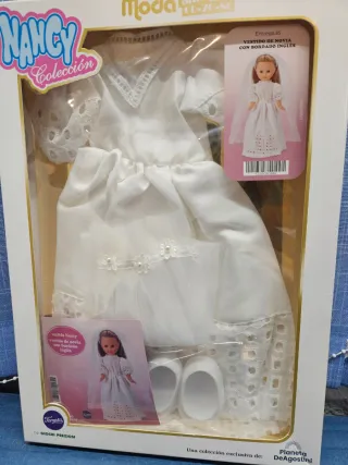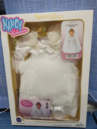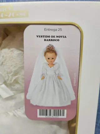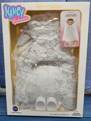Vestido de novia estilo barroco para muñeca Nancy. Incluye velo y tiara. - Diseño detallado. - Ideal para coleccionistas.