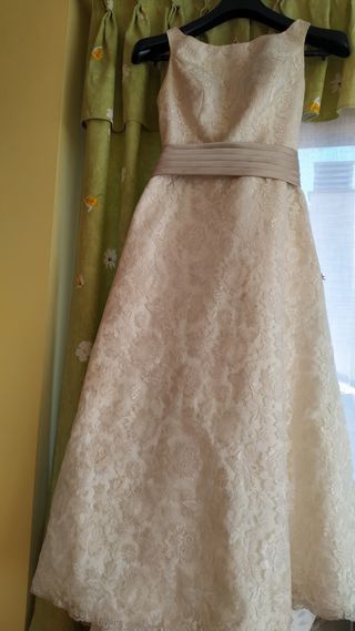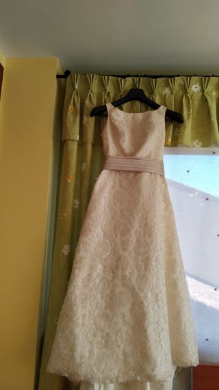 Vestido de novia,talla 44,usado una vez,en perfecto estado,color crema y necesitaría ir a la tintorería. Precio negociable
