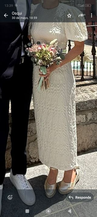 "Vendo vestido de novia elegante y muy favorecedor. Talla 42. Muy buen precio" Precio 390€