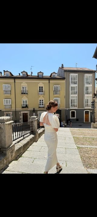 ¿Buscas un vestido de novia elegante, cómodo y con un aire atemporal? Vendo hermoso vestido de novia estilo griego, en excelente estado, usado solo una vez. Talla 38. Ideal para novias que buscan un look romántico, fluido y sofisticado. El diseño resalta la figura con un corte imperio que estiliza y aporta mucha comodidad. Confeccionado en tela ligera y caída suave, perfecto para ceremonias al aire libre o bodas bohemias. Detalles delicados en el escote y la espalda que lo hacen único. Se entrega limpio y en perfecto estado. Posibilidad de probar sin compromiso. ¡Una opción preciosa y económica para tu gran día!