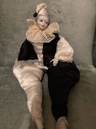 Preciosa muñeca de colección con un elaborado vestido de novia. - Vestido de encaje blanco con volantes. - Detalles de cintas de satén. - Cabello rizado rubio. - Etiqueta de Regalos visible.