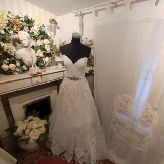Elegante vestido de novia con detalles de encaje. Se encuentra en perfecto estado. - Diseño de encaje intrincado. - Silueta favorecedora. Puesto solo unas horas. Ver y probar antes de comprar