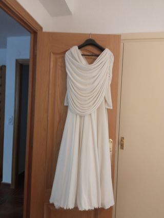 Vestido de novia , talla 42/ 44 altura para una persona de 155 de altura . Mangas 3/4 Sólo 1 uso completamente limpio .
