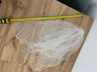 Velo de novia con detalles de perlas, ideal para despedidas de soltera o bodas. - Tejido de tul fino. - Adornado con pequeñas perlas. - Borde festoneado.