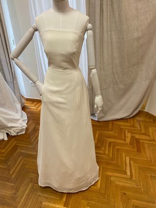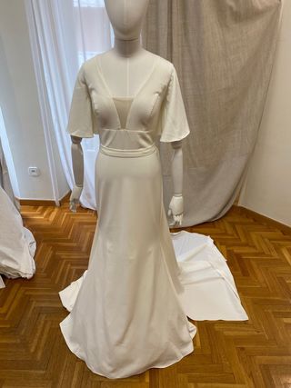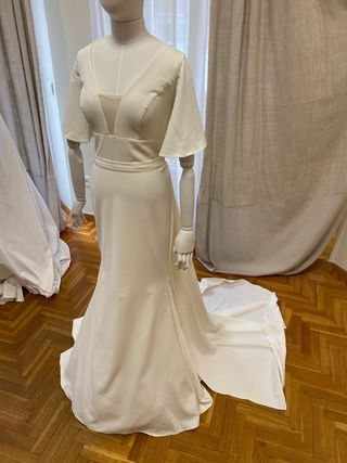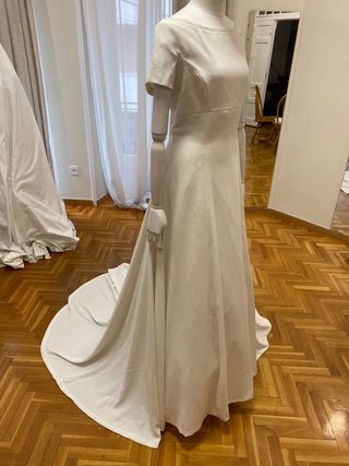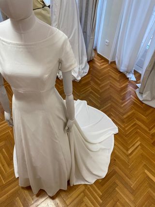 Limpio en tintorería y guardado en su caja. Sencillo y elegante. Lleva poca cola. En su caja.Te regalo el cancan. Mas informacion sin compromiso por chat. La talla es 44/46 Hago envios
