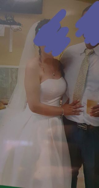Vestido usado solo ese día, es tipo corsé vale para varios tallas, también va incluido en velo