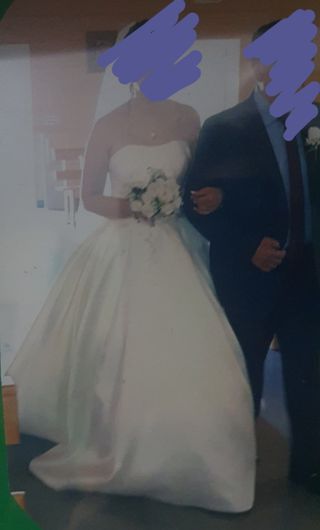 Vestido novia talla 38 y para mujer de aprox 1,70 cm Habría q llevarlo al tinte porque se usó en la boda y no sé lavó