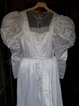 Vestido de novia de los años 80, comprado en Pronovias, vintage, antiguo, buena calidad, limpio, tiene una mancha (ultima foto) Diseño clásico y elegante con mangas abullonadas, falda larga y fluida, y detalles de perlas (toene todas las perlas) en el escote y mangas