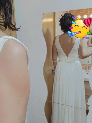 Vestido de novia de Sedka. Es un vestido sencillo pero con mucha personalidad, queda precioso puesto y es comodísimo. Es simplemente precioso. Talla 38, no hubo casi que hacer arreglos, apenas meter un pelín en la cintura y pecho, pero prácticamente nada, me pusieron copas para levantar un poco el pecho ya que iba sin sujetador, se pueden quitar sin problema si fuese necesario. Normalmente uso talla 36 de ropa normal. Para información más detallada porfa escríbeme, te ayudaré con todo lo que necesites. Se puede probar sin compromiso. El precio es negociable.