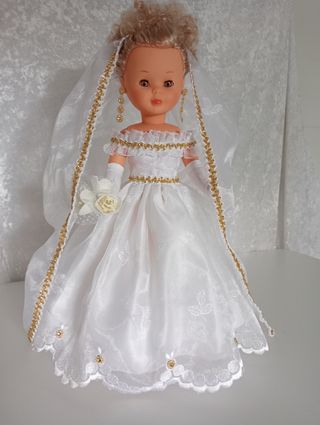 ESPECTACULAR VESTIDO DE NOVIA CON SU LARGO VELO , GUANTES, RAMO Y PENDIENTE. ( SIN MUÑECA NI ZAPATOS) MAS ROPITA EN MÍ PERFIL. PAGO POR BIZUM CORREO CERTIFICADO , TAMBIÉN ENVÍO POR WALLAPOP CORREO. Y TAMBIÉN CORREO ORDINARIO. NO ENVÍO POR GLS NI OTROS PARECIDO.