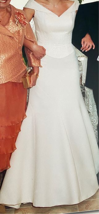 Vestido novia Jesus Peiro. Yo mido 164. Es palabra de honor y tiene chaleco a juego. También regalo el velo que está un poco roto.