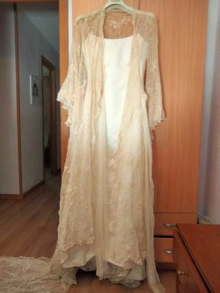 Vestido novia beige encaje