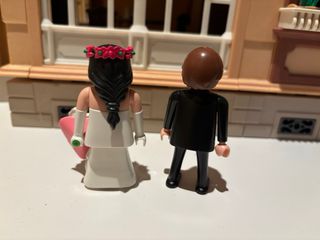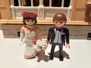 Figura de novios de Playmobil, perfecta para coleccionistas o para recrear momentos especiales. - Novia con vestido blanco y ramo de flores. - Novio con traje de etiqueta.