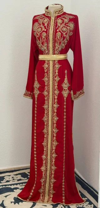 Kaftán Marroquí Bordado Rojo y Dorado
