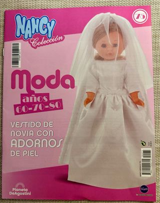 Precioso vestido de novia para muñeca Nancy, de la colección Moda años 60-70-80. El vestido es nuevo y se encuentra en perfecto estado. Incluye: - Vestido de novia blanco. - Velo. - Corona. - Zapatos. Ideal para coleccionistas. Vestido nuevo sin abrir en su embalaje original