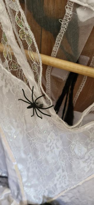 Disfraz de novia cadáver para niña, ideal para fiestas de Halloween. - Talla 8-10 años. - Incluye telarañas y arañas decorativas. - Mangas de encaje blanco. - Vestido blanco.