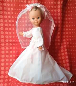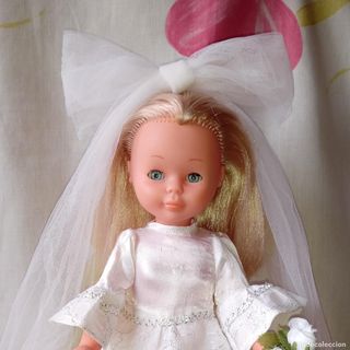 Preciosa muñeca Nancy colección Ion Fiz vestida de novia, con velo de tul y detalles de encaje. Ideal para coleccionistas. - Muñeca Nancy con vestido de novia. - Velo de tul blanco. - Detalles de encaje en el velo.