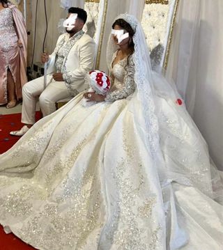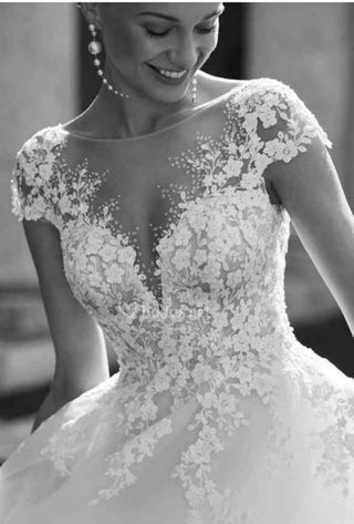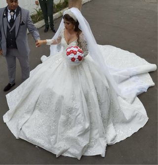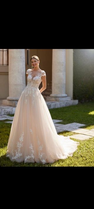 Vestido de novia corte en A con pedrería | Como nuevo Vendo este espectacular vestido de novia estilo princesa, de tul con pedrería y cuerpo corsé con botones forrados. Lleva mangas largas abullonadas con tul ilusión bordado en pedrería y escote corazón con detalles florales. La espalda baja también decorada con aplicaciones. La falda tiene caída suave y elegante con cola de 200cm. 🔹 Precio original: 1.800€ 🔹 Lo vendo por: 750€ 🔹 Estado: Impecable, usado solo un día y recién salido de tintorería profesional (150€) 🔹 Talla aproximada: 40-42 (ajustable gracias al corsé) Es ideal para novias que buscan un look romántico.