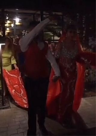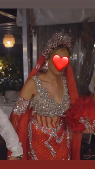 Precioso vestido de novia, ideal para una boda gitana✨ -biene belo y corona y pendiente - Color rojo intenso con detalles plateados. - Confeccionado con pedrería brillante. - Diseño elegante -bestido arabe -tiene 3 metros de cola _en mi tikto se ve mejor!! @elvirayjuan_13