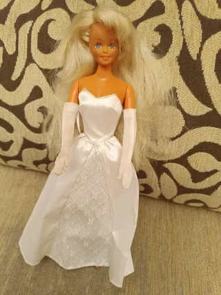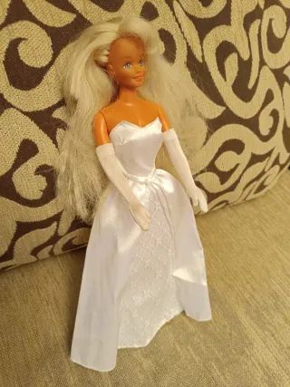 Se vende esta Muñeca Barbie Novia del año 1993. Viste un elegante vestido blanco de novia con guantes a juego.Vestido blanco satinado. Detalle de encaje en la falda. Guantes largos blancos.Se vende por 6€ La muñeca está en Santander zona centro Se hacen envíos En mi perfil tengo más artículos infantiles , Legos , Barbies y para bebes.