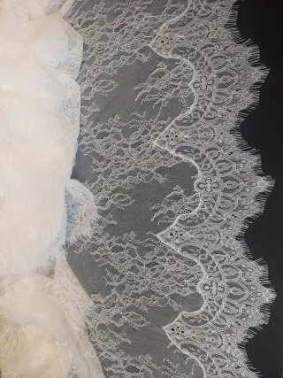 Elegante mantilla de novia con delicado encaje chantilly. Elaborada en 3 metros de largo. Si tu vestido te lo permite, una mantilla siempre es una buena elección para una inspiración romántica. Si tienes cualquier duda, consúltame por chat. Es NUEVA (por supuesto). NO SE ADMITE DEVOLUCIÓN DE ESTE ARTÍCULO DEBIDO A SU DELICADEZA - Diseño floral intrincado. - Blonda entolada a nano a todo alrededor, diseño ovalaco. - Tejido ligero y etéreo.