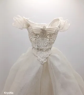 Traje de novia para muñeca Nancy, con un diseño minimalista y fajín. - Vestido blanco de novia. - Incluye velo. - Fajín a juego.