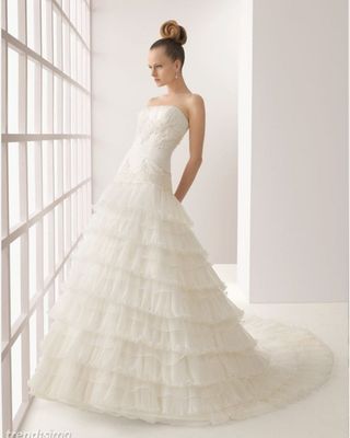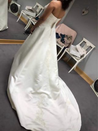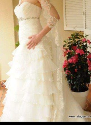 Se vende vestido de novia Rosa Clará T-42 (equivale a una 36-38) con una bonita cola con volantes, en perfecto estado, limpio en tintorería Con su funda original Mido 167cm y peso 54kg
