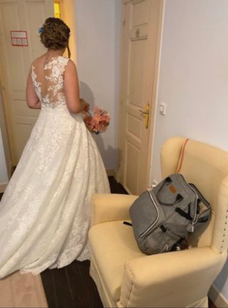 vestido de novia de la colección aire barcelona es un vestido precioso puesto el día de la boda y las fotos de después yo uso una talla 48 para que os hagáis una idea y para más dudas privado el vestido costo 2190€ escucharé ofertas abstenerse ofertas ridiculas