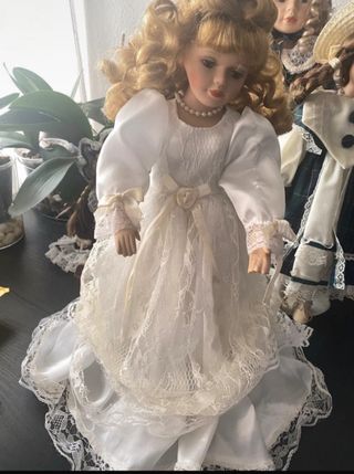 Tiene el vestido descosido un poco de puntilla( ver foto) y está despeinada, lo demás lo normal de más de 30 años, un poco resobada de tanto tiempo