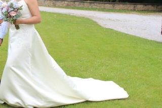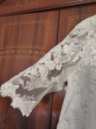 Usado unas horas , limpio de tintorería en perfecto estado. Talla 42-44 marca la sposa .