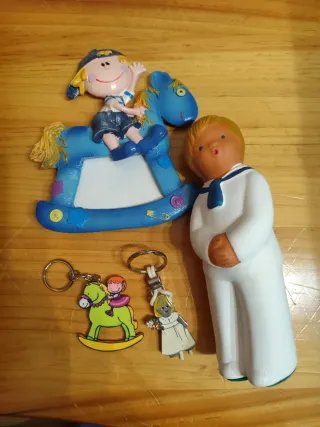 Pareja de muñecos decorativos, ideales para bodas o como regalo. - Figuras de novios con traje y vestido. - Hechos de materiales variados, con detalles en tela y cuerda. - Diseño simpático y colorido.