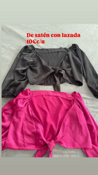Top corto con un tejido brillante y detalles de botones. Camiseta brillante color gris. - Diseño de manga corta abullonada. - Cierre frontal con botones. - Acabado metalizado. 2€ la unidad