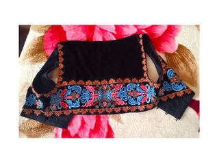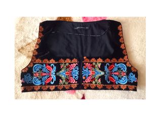 Se vende hermoso Top corto de la marca ZARA con un diseño de bordado vibrante. Botones también bordados. Talla L Europea. Nuevo, sin usar. - Color base negro de terciopelo. - Bordado multicolor con detalles en azul, rosa y naranja. - Talla L - Corte cropped.