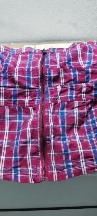 Conjunto de ropa de Bershka con estampado de cuadros. - Top con cremallera frontal. - Falda a juego. - Diseño de cuadros en rojo y azul. -vestido negro con tirantes y bajo con tutú muy bonito