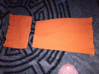 Conjunto de falda y top hechos a mano a partir de un vestido. - Color naranja vibrante. - Diseño único.