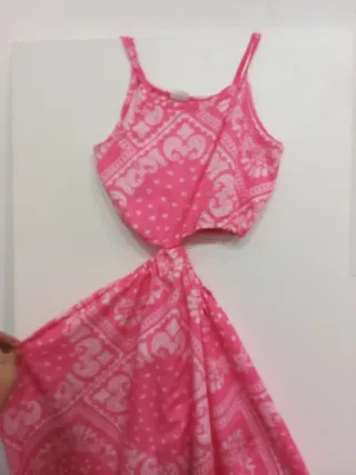 Top / vestido con un diseño abierto por los laterales y detalles de flecos. - Tejido elástico, ligero, red y transpirable. - Acabado brillante. - Ideal para llevar sobre el bañador. 🚀 Vendo por MUDANZA.
